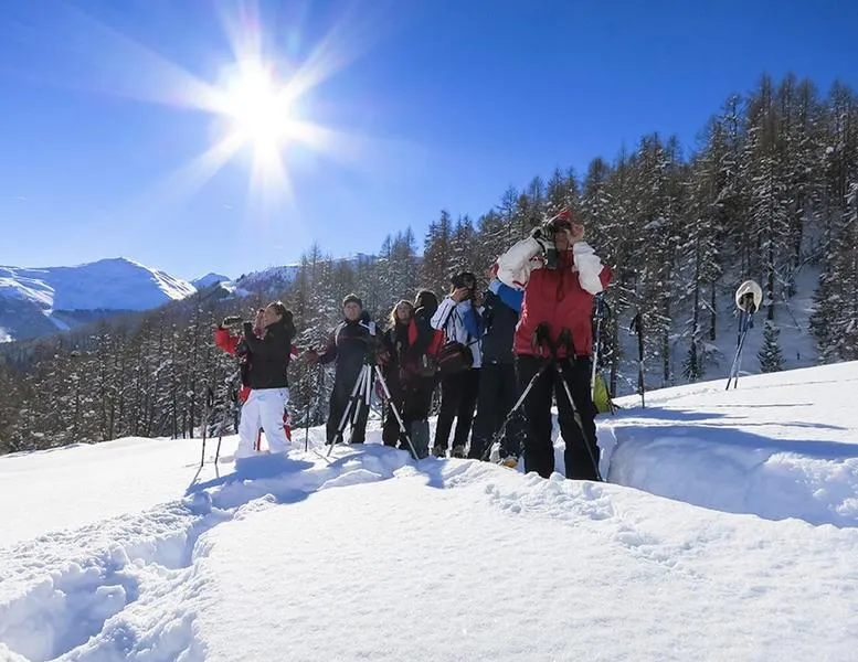 È possibile scegliere tra 4 escursioni in base alla durata e al momento della giornata. Guide alpine esperte vi accompagneranno tra sentieri innevati alla scoperta delle tracce di animali sulla neve.