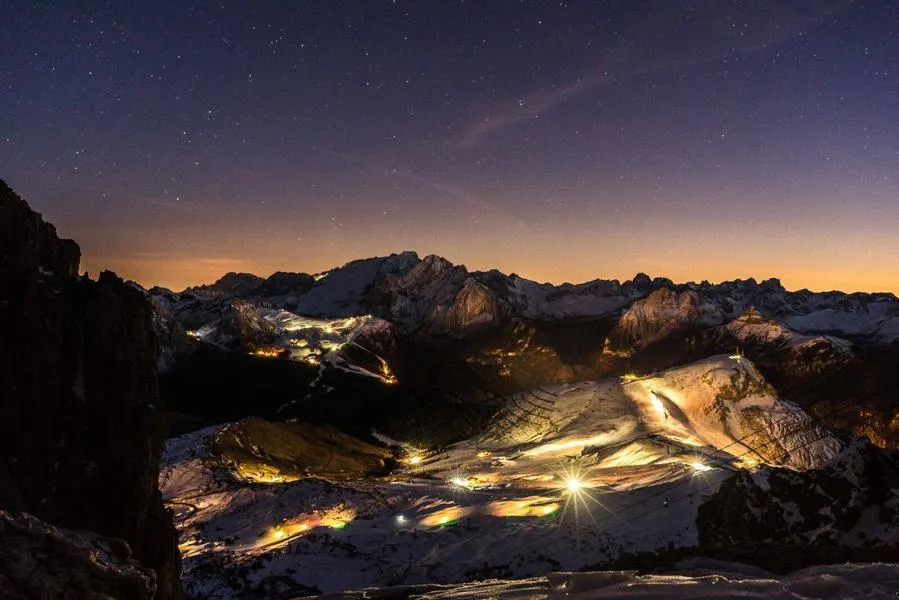 Ciaspolata notturna con cena in motoslitta in Val di Fassa