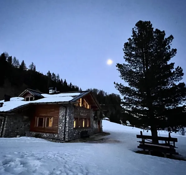 Preparati a vivere un'esperienza di cena in baita con trasporto in motoslitta e ciaspolata notturna in Val di Fassa e goditi una nottata fantastica tra la neve e i paesaggi fiabeschi del Trentino.