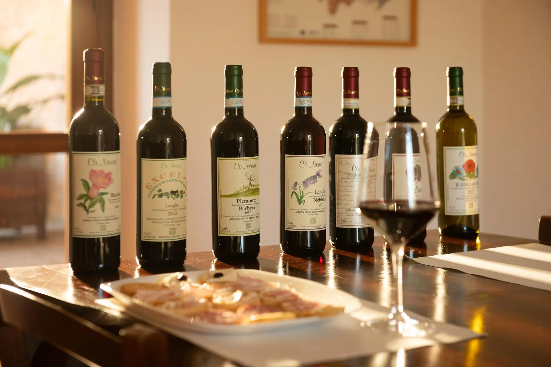 Sergio condivide la storia di ogni vino, dalla sua nascita nei vigneti fino al processo di vinificazione in cantina. Nel frattempo, vengono serviti i piatti associati a ciascun vino. La degustazione è accompagnata da assaggi di salsa tonnata, salame crudo, pancetta, lardo, tuma con la cugnà e biscotti.