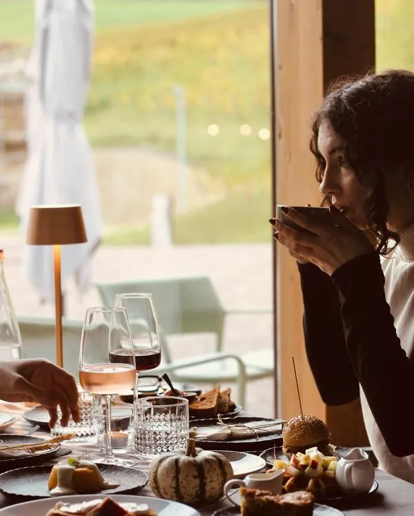 La proposta aperitivo in cantina consiste in un tagliere tradizionale di salumi e formaggi a KM0, prodotti da forno e una dolce coccola finale. In abbinamento tre calici, di cui un passito, della produzione aziendale