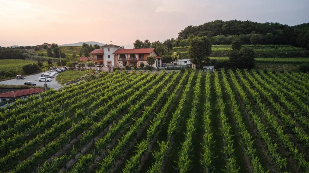 Aperitivo e degustazione di vino al tramonto in una location romantica tra le vigne fuori Bergamo a Scanzorosciate.