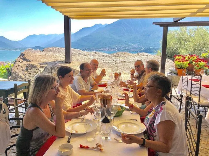 La degustazione si svolgerà in un ambiente rilassante perfetto per una giornata di vacanza o un weekend fuori porta. L'agriturismo dispone di una veranda panoramica e di un giardino terrazzato da cui ammirare la vista sul Lago.