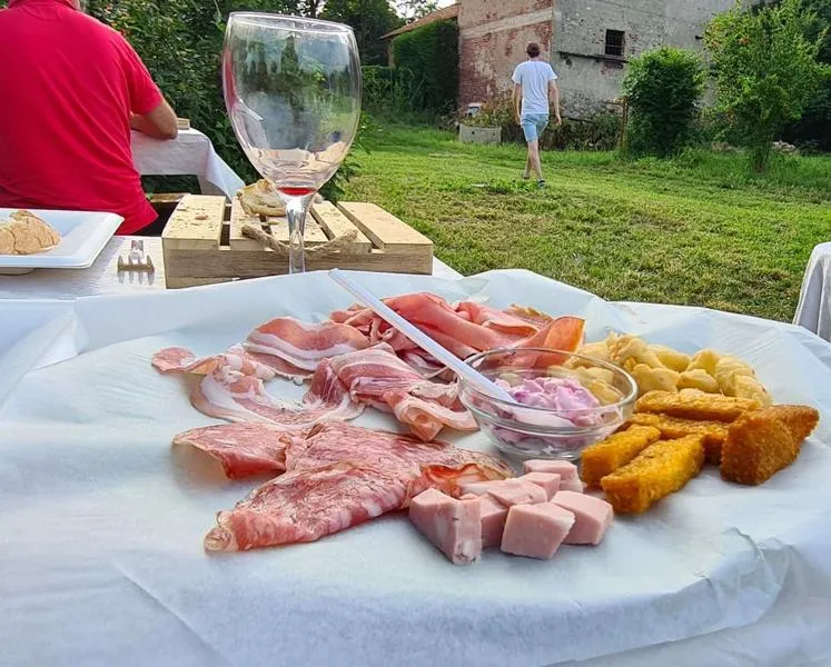 La degustazione prevede l'assaggio di un Nebbiolo di Cascina Teresina accompagnato da un tagliere con selezione di formaggi, affettati e un contorno di stagione.
