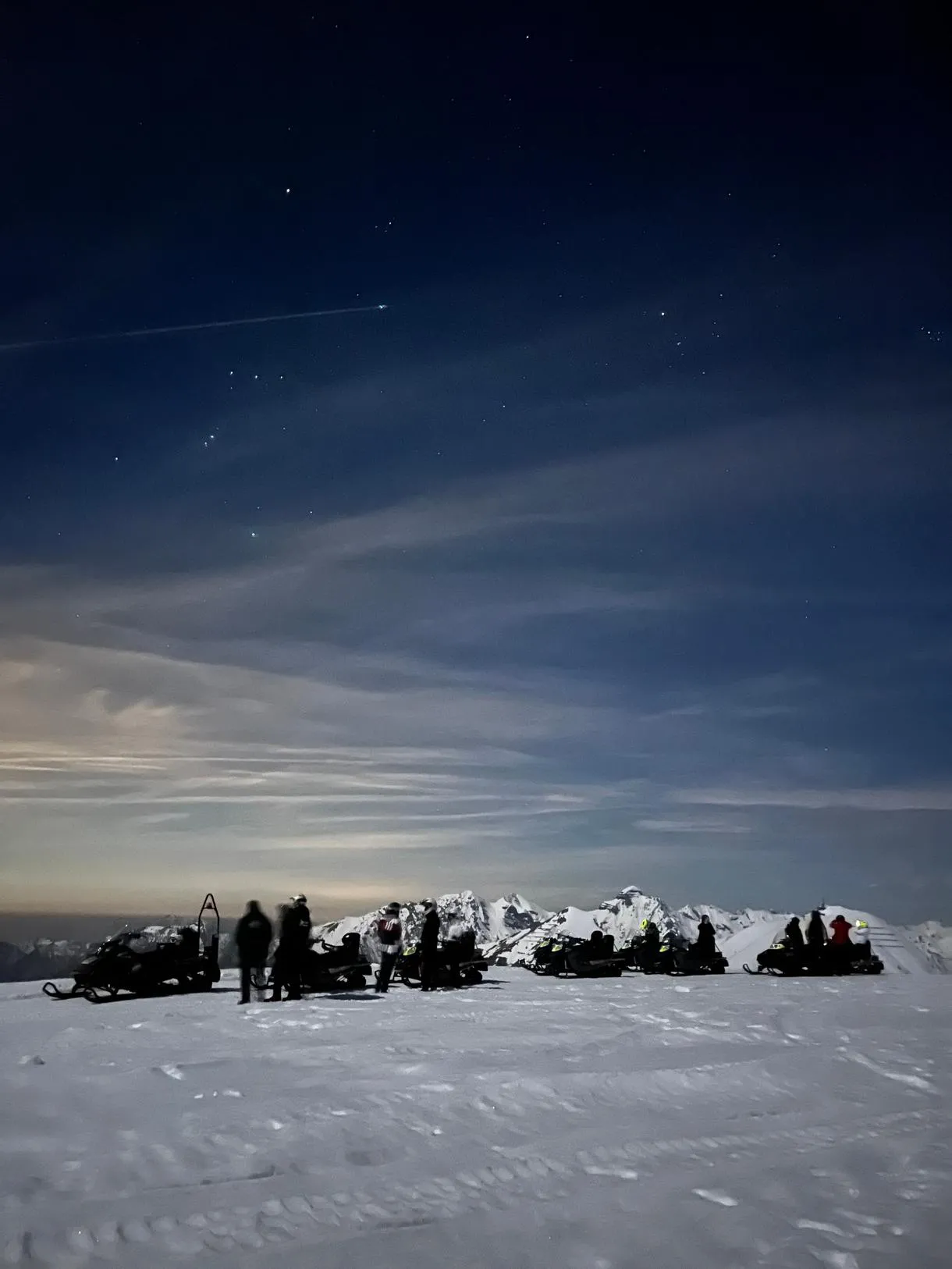 Partendo dalla Baita Belfud per le 17:00 o 18:30, salirete con le motoslitte guidate da voi fino a 2.200 metri di altitudine per godervi il panorama mozzafiato delle Alpi al tramonto e scattare delle foto. Successivamente, raggiungerete un rifugio per fare un aperitivo in quota insieme alla guida e al resto del gruppo.