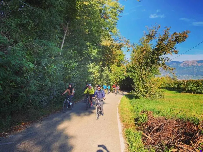 (mezza giornata – circa 40 km): Questo tour ciclistico ti porterà a esplorare i suggestivi vigneti e i dolci saliscendi delle Colline Moreniche. Sarai accompagnato da una guida cicloturistica che ti condurrà lungo strade alternative, permettendoti di apprezzare i panorami e l'atmosfera unica di questa regione. Durante il tour, farai una visita alla "Cantina Tenuta Maddalena" di Volta Mantovana, dove potrai degustare vini locali e scoprire il processo di produzione.