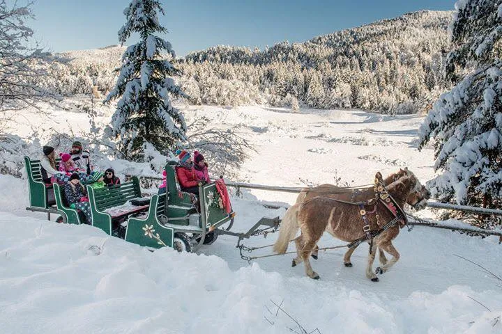 A bordo della slitta, possono salire massimo 4 persone alla volta. In caso di gruppi oltre le 4 persone, verrà attaccata una seconda slitta.