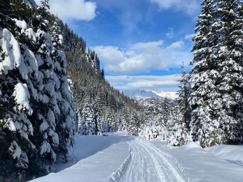 Si arriva verso il paese percorrendo una pista esclusivamente pedonale battuta dal gatto delle nevi e quindi facilmente percorribile dalla slitta.