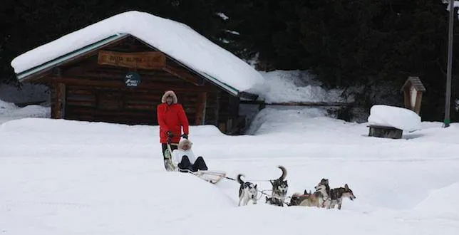 Sì, i bambini possono partecipare all'escursione in motoslitta dietro un guidatore oppure, se sono più piccoli, tra le gambe del guidatore. Si sconsiglia la partecipazione ai neonati fino a circa 2 anni.