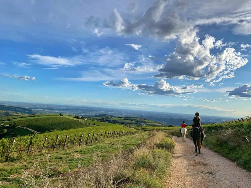 Passeggiata a Cavallo sulle colline che si affacciano sulla sponda ovest del Lago di Garda da Toscolano Maderno, in percorsi immersi nella natura.