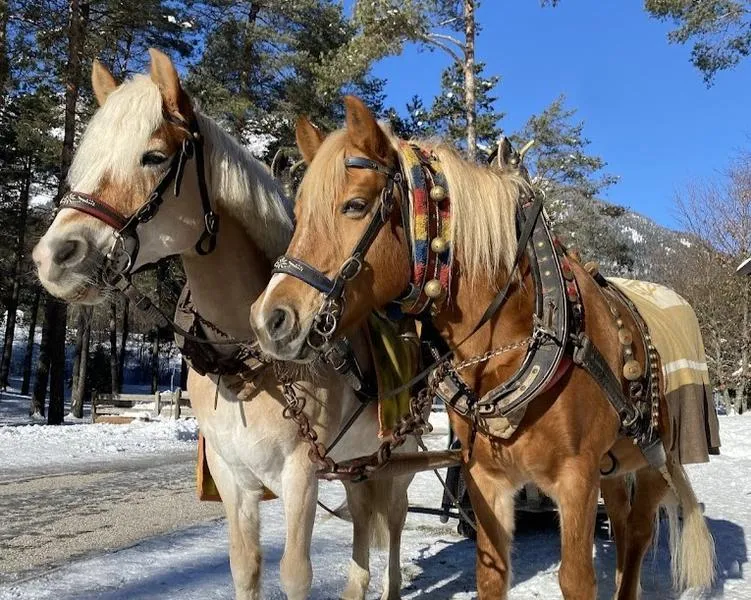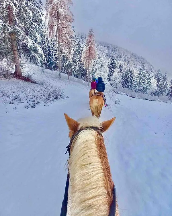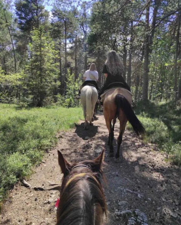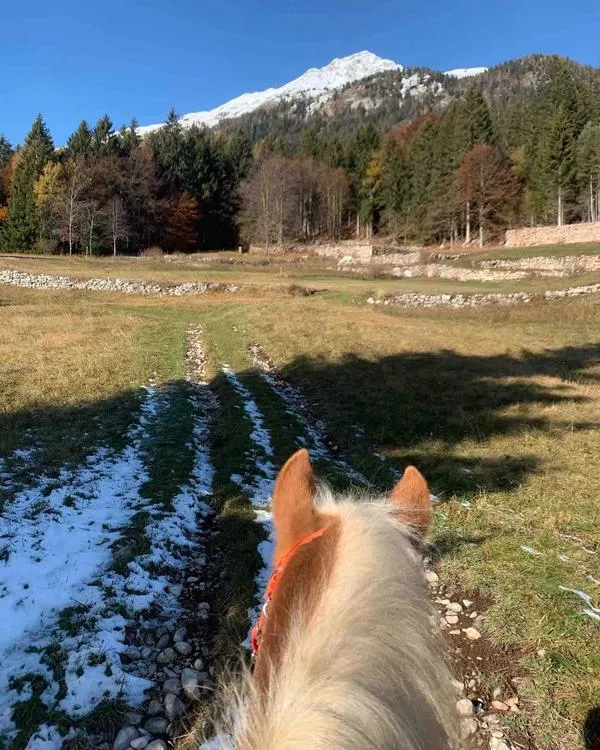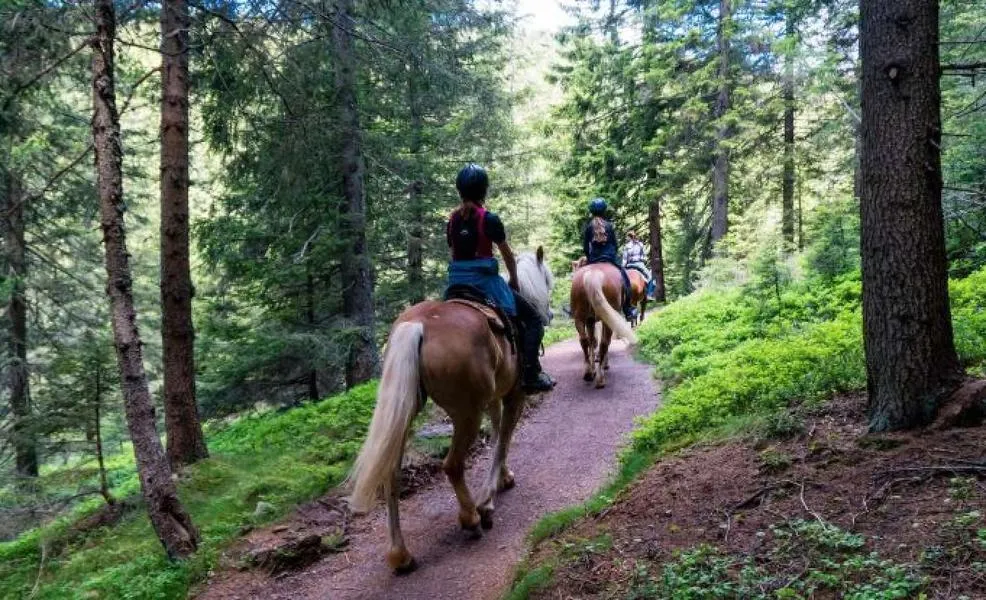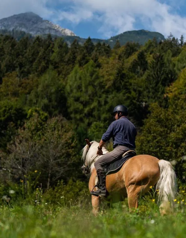 Durante l'escursione a cavallo con partenza da Cavedine, poco a nord di Riva del Garda, si seguono dei sentieri ai piedi del Monte Bondone entrando in un bosco vicino.