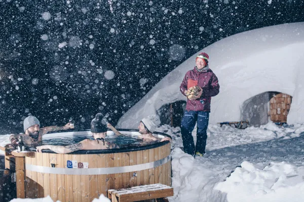 L'escursione con i cani da slitta è un'esperienza bellissima di gruppo, della durata complessiva di 1 ora. Si può condurre in prima persona una slitta trainata dai cani.